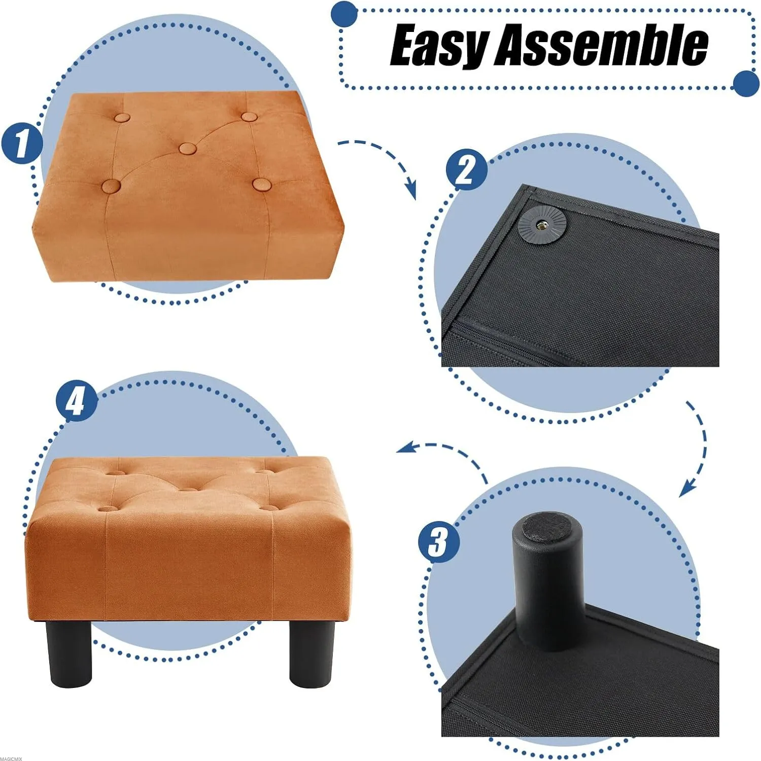 Mały puf, pokryty wysokiej jakości grubą gąbką i aksamitem, zapewnia gęstszą i bardziej miękką wyściółkę siedziska. Pufy idealnie nadają się do siedzenia lub do odpoczywania na stołkach.